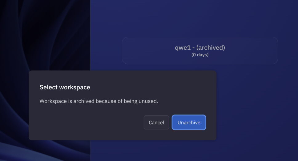 Unarchive a workspace: It's now possible to unarchive your workspace by clicking the workspace on the list and select Unarchive. This is useful if you need to restore access to a workspace that was archived due to inactivity. #8084